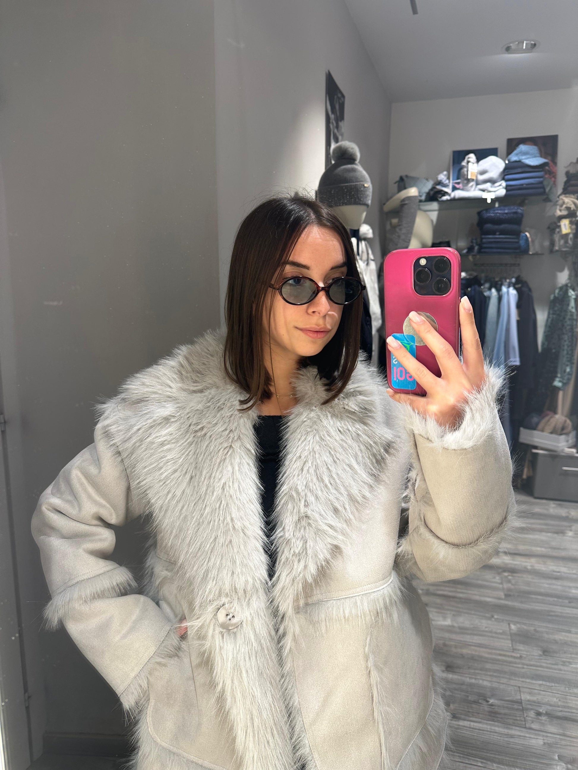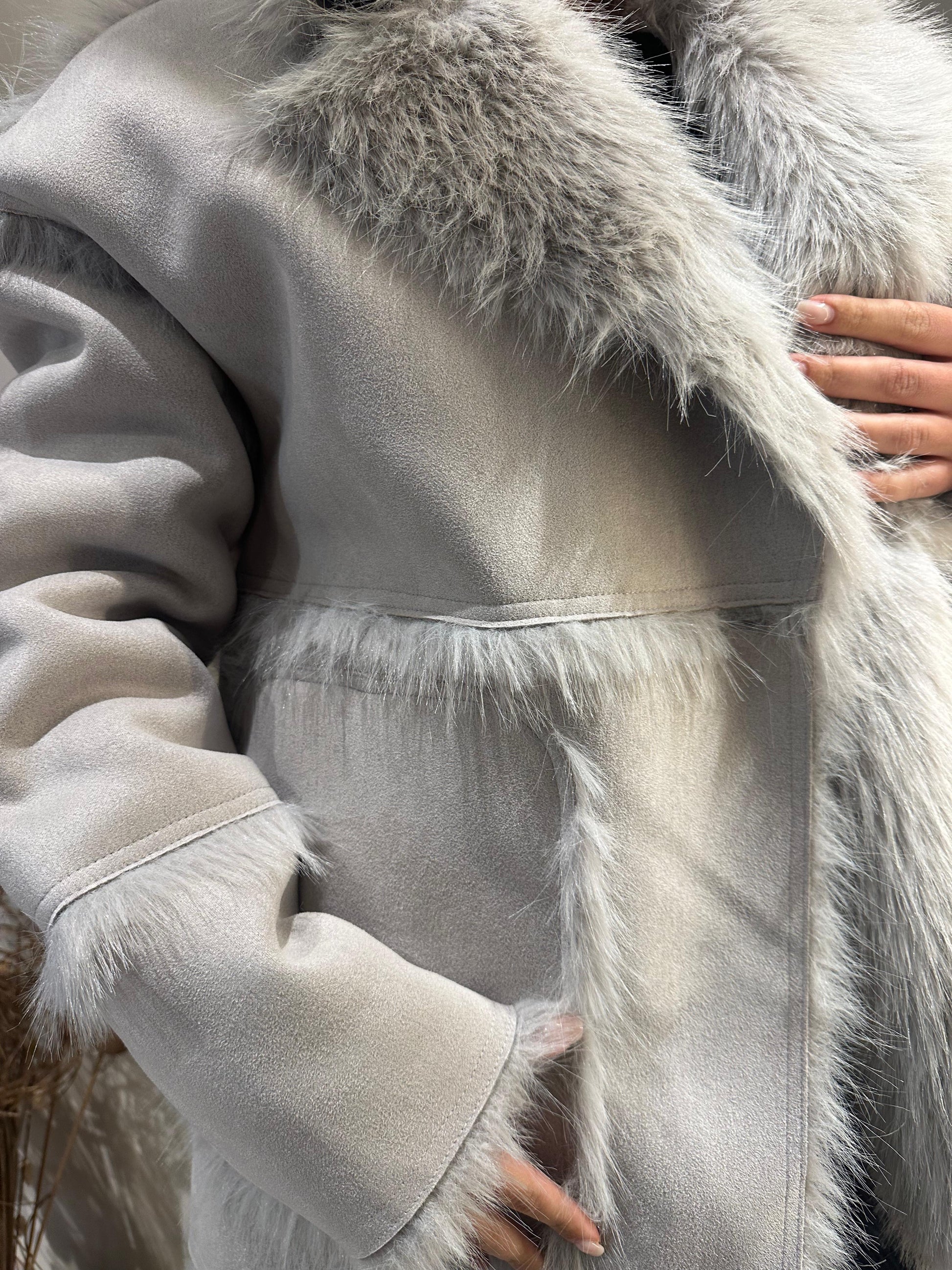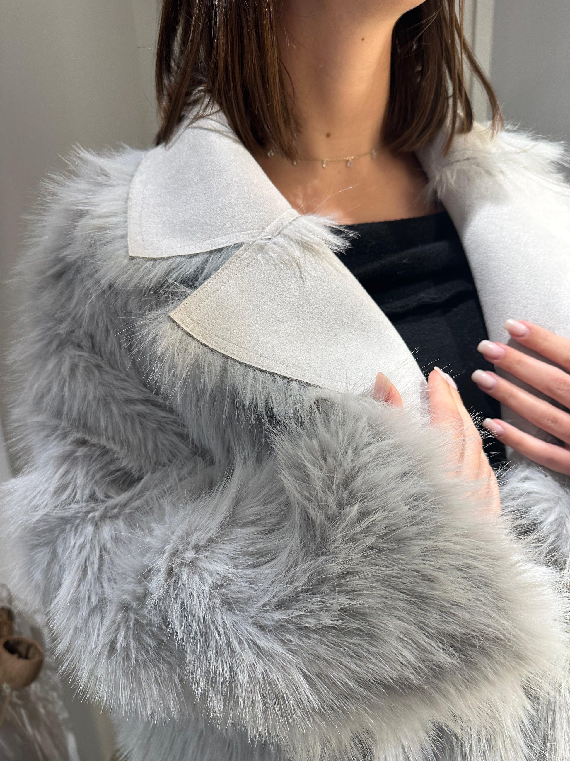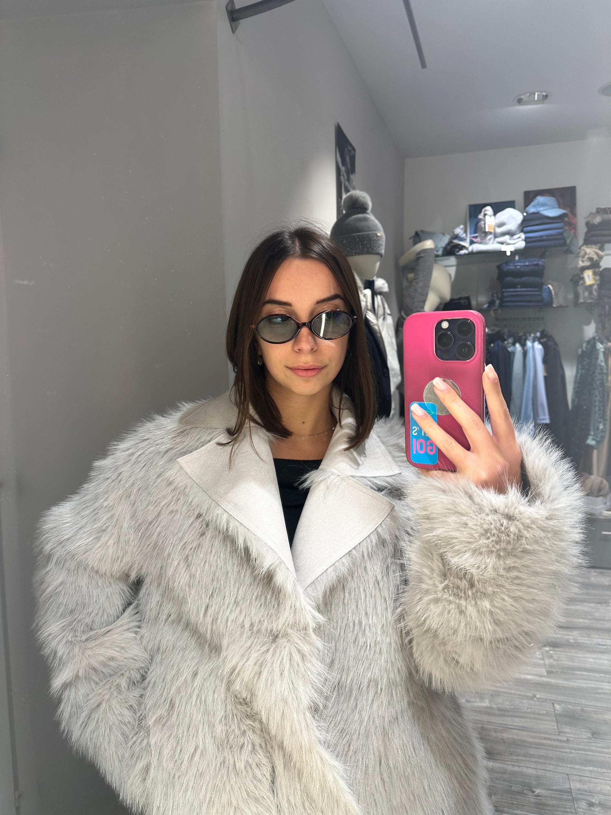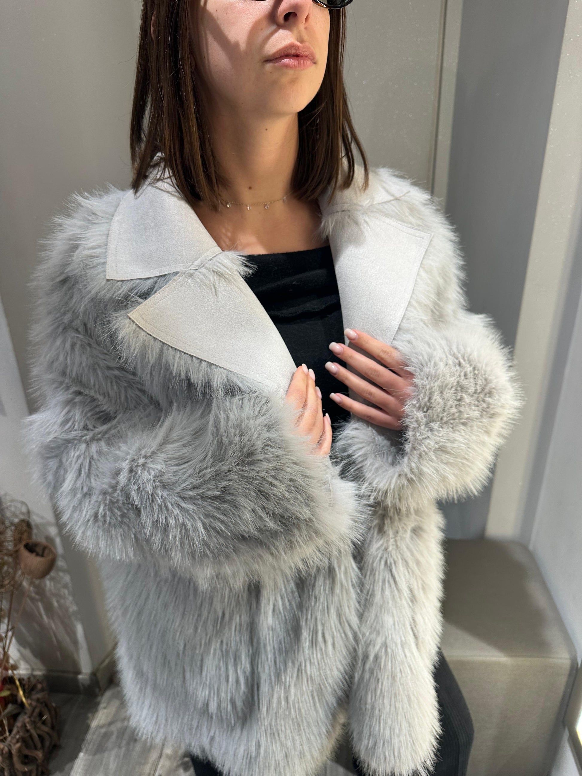 Versatilità e comfort in un unico capo: questa ecopelliccia reversibile grigia ti offre due look distinti. Un lato avvolge con una pelliccia voluminosa e incredibilmente morbida, mentre l'altro presenta un elegante panno soffice. Perfetta per adattarsi a ogni occasione e stagione, trasformando il tuo stile con un semplice gesto. Investire in un pezzo reversibile significa moltiplicare le possibilità del tuo guardaroba mantenendo consapevolezza ecologica. Qualità, praticità e sostenibilità in armonia.