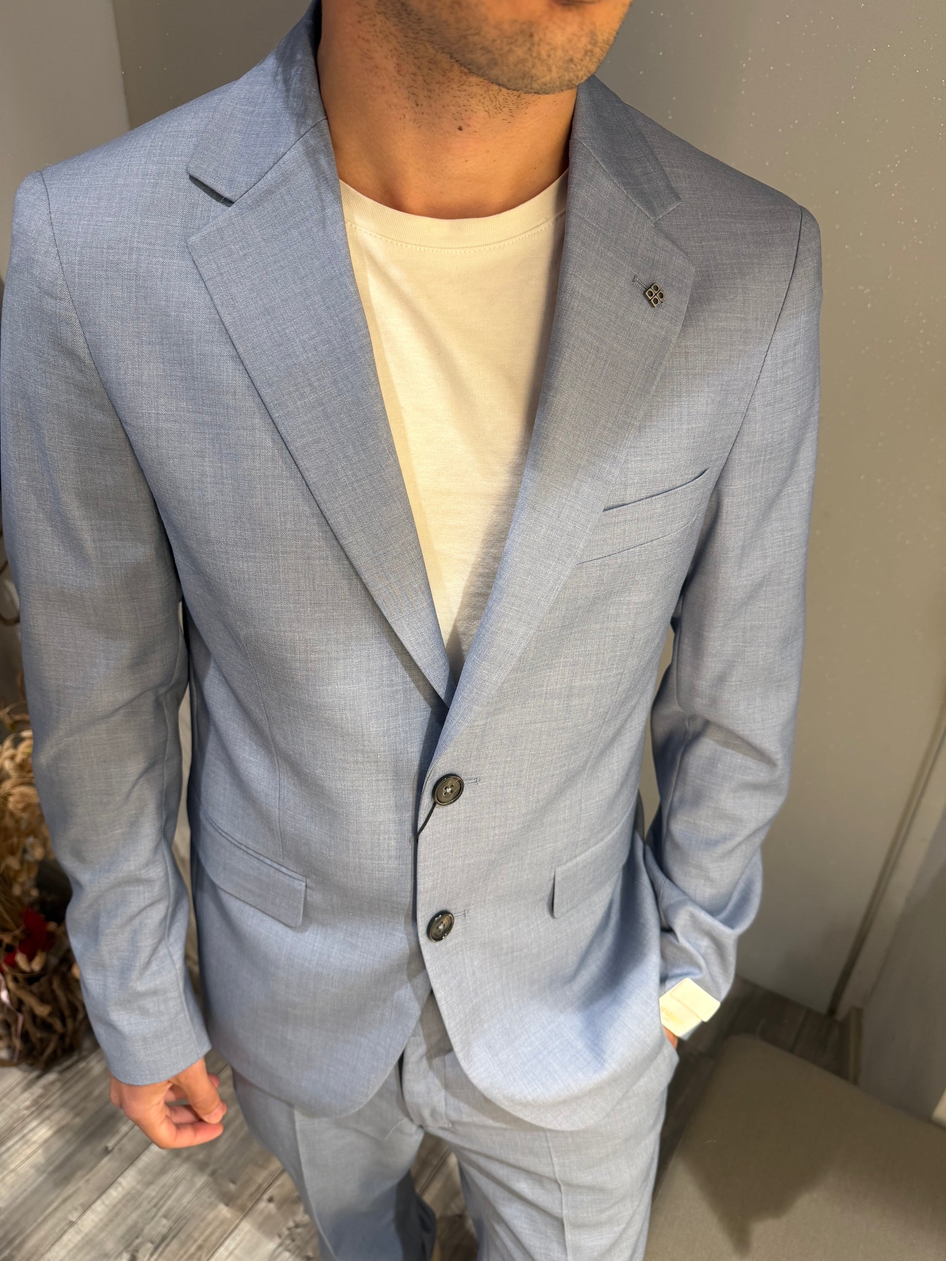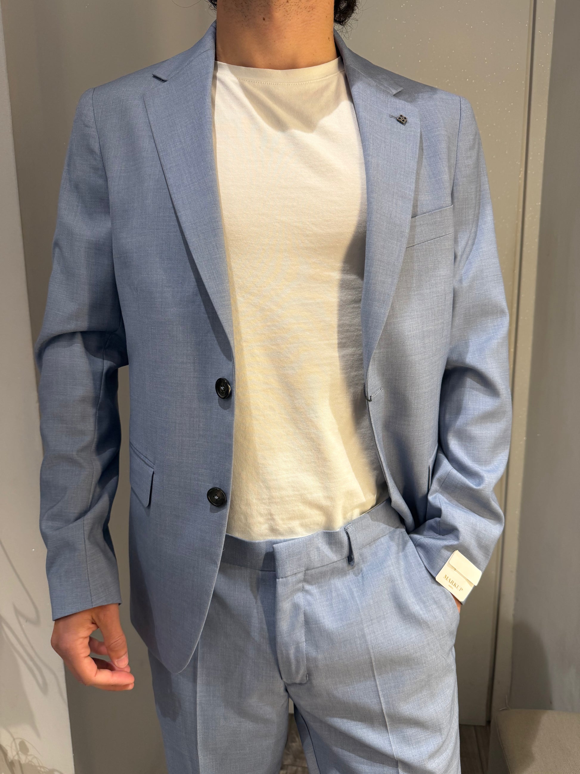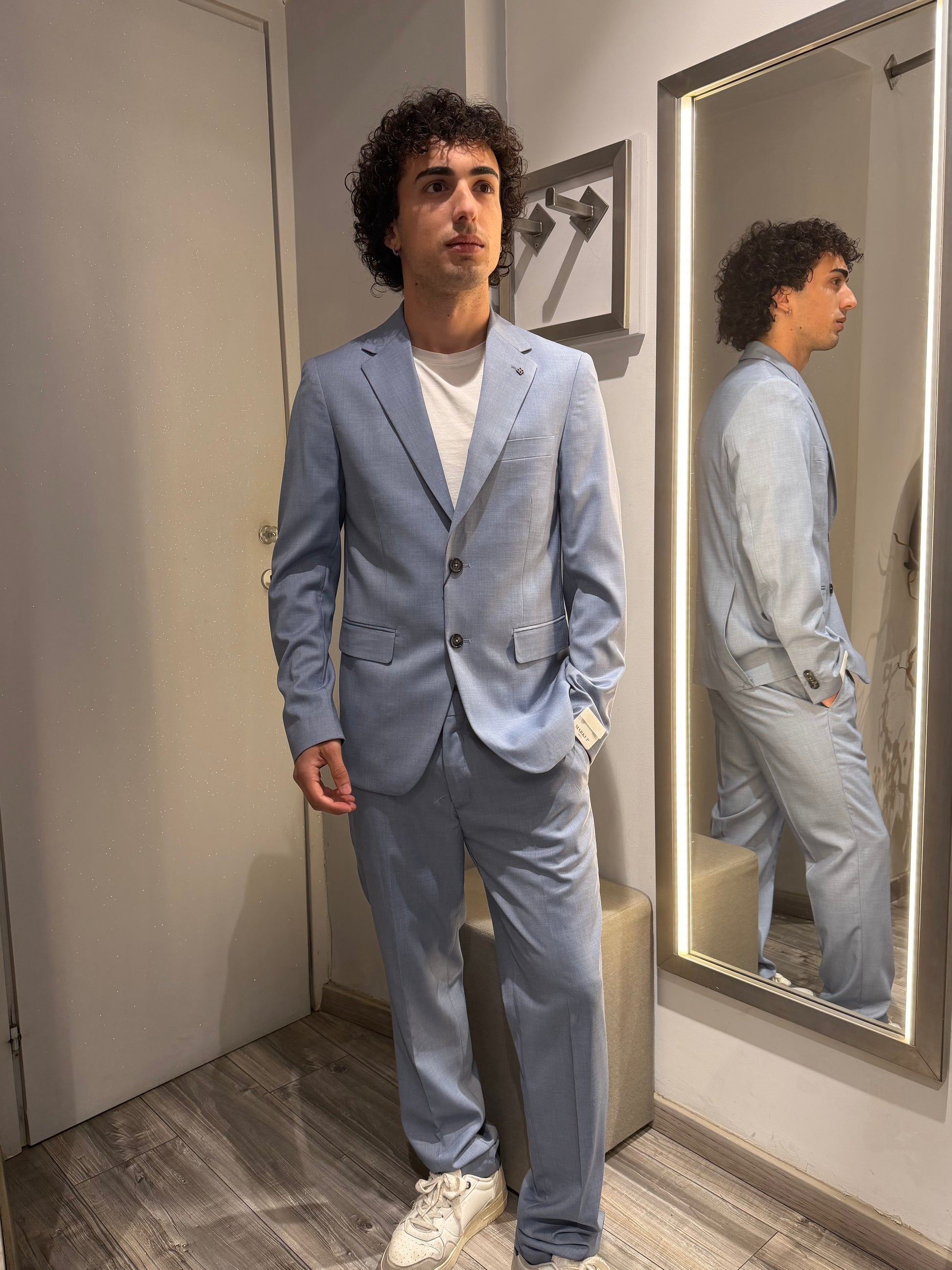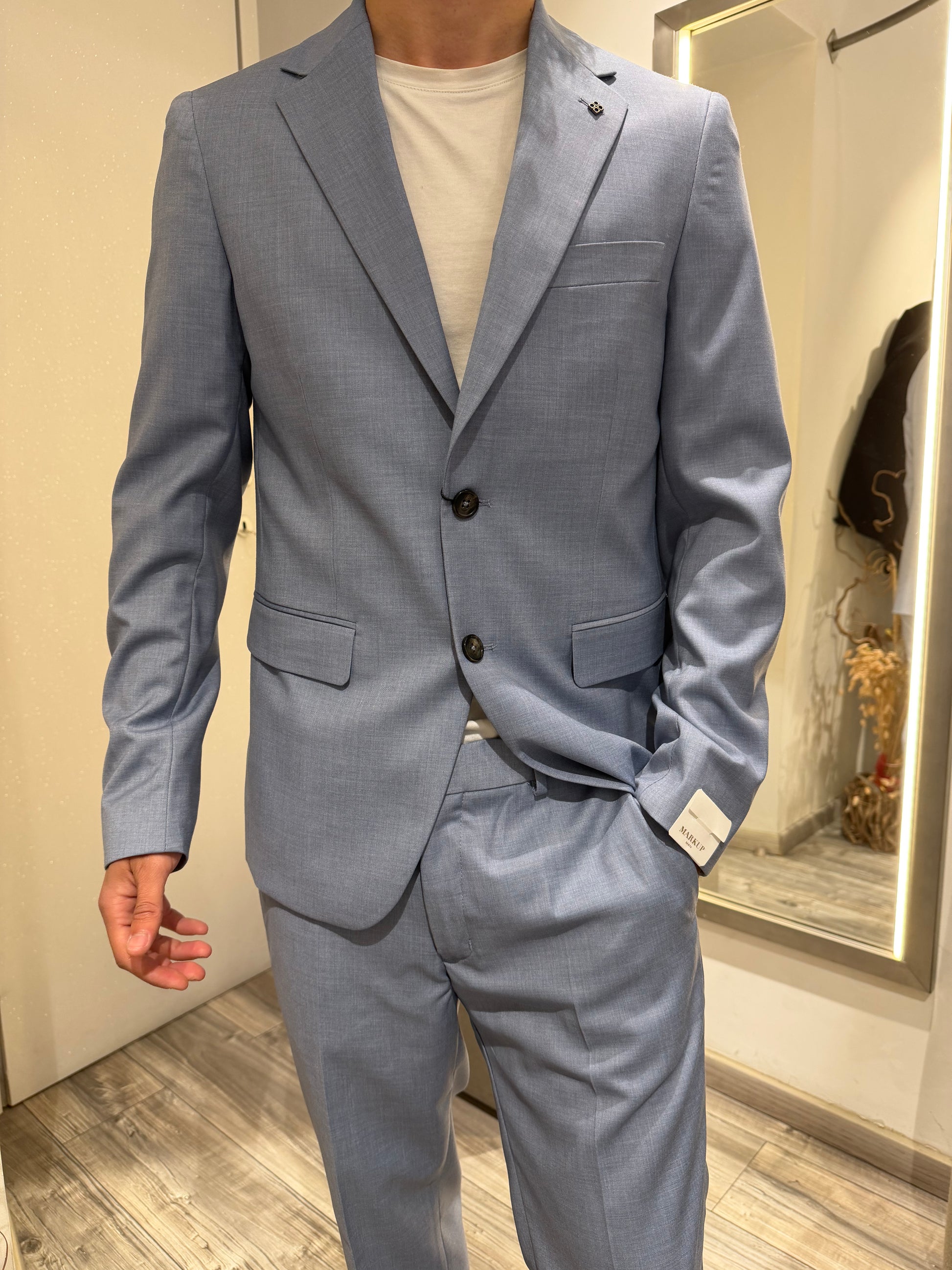 ABITO MONOPETTO IN POLIVISCOSA CELESTE MELANGE