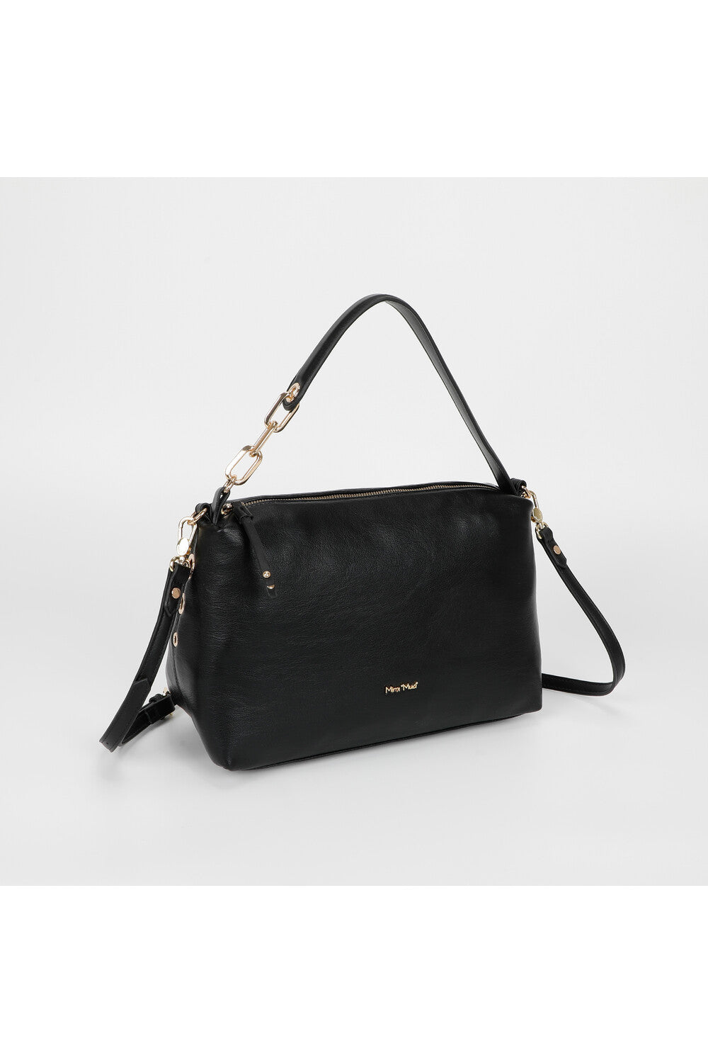 Questa borsa a spalla unisce eleganza e praticità grazie alla catena decorativa all'inizio e agli occhielli laterali, che conferiscono un tocco distintivo e moderno. La tracolla removibile offre versatilità d’uso, permettendo di portarla a mano o a spalla a seconda delle esigenze. Completa il design funzionale una zip posteriore, utile per riporre con sicurezza piccoli oggetti a portata di mano. Un accessorio sofisticato che unisce stile e funzionalità.