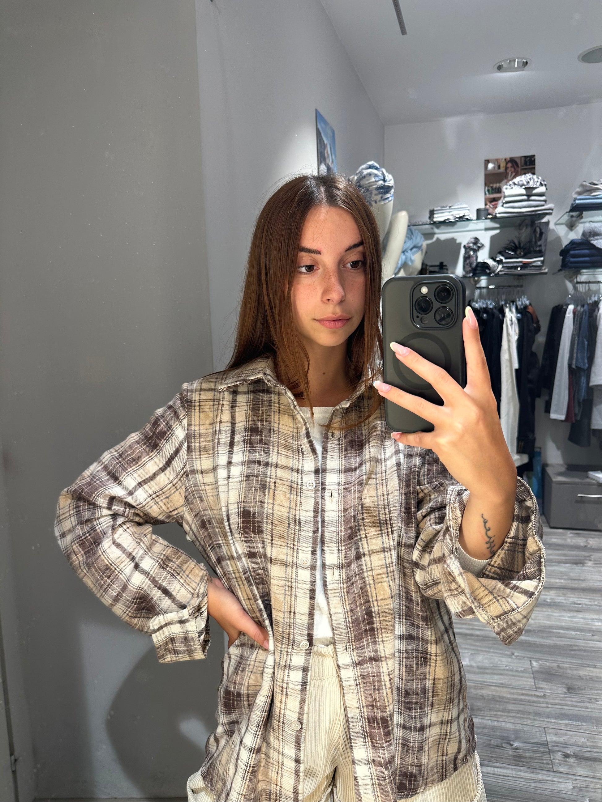 CAMICIA IN FLANELLA FANTASIA CHECK BEIGE