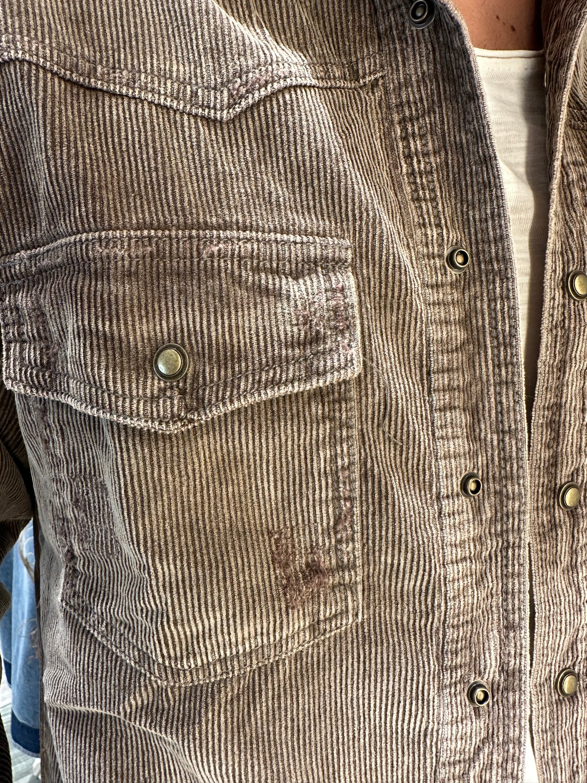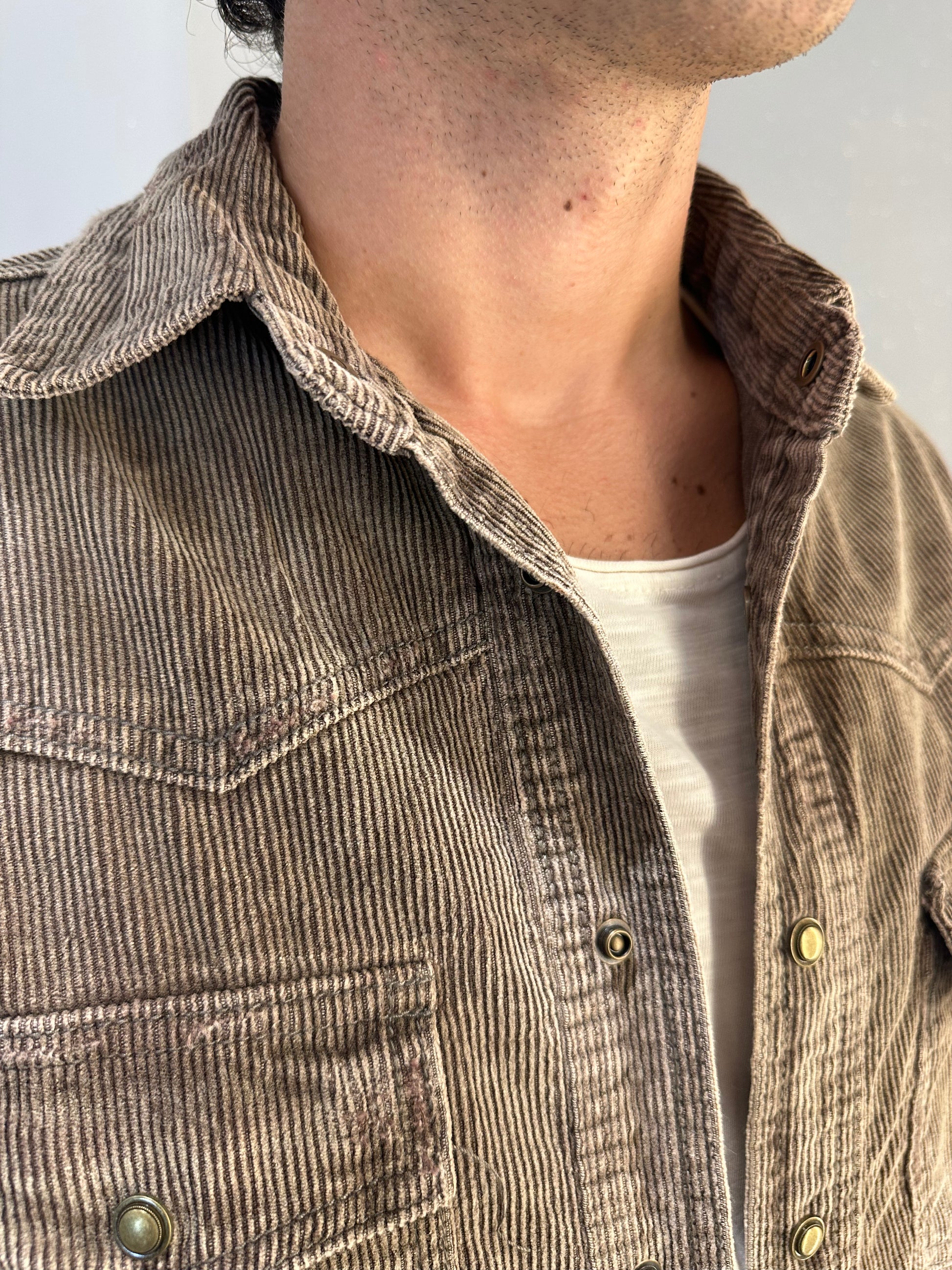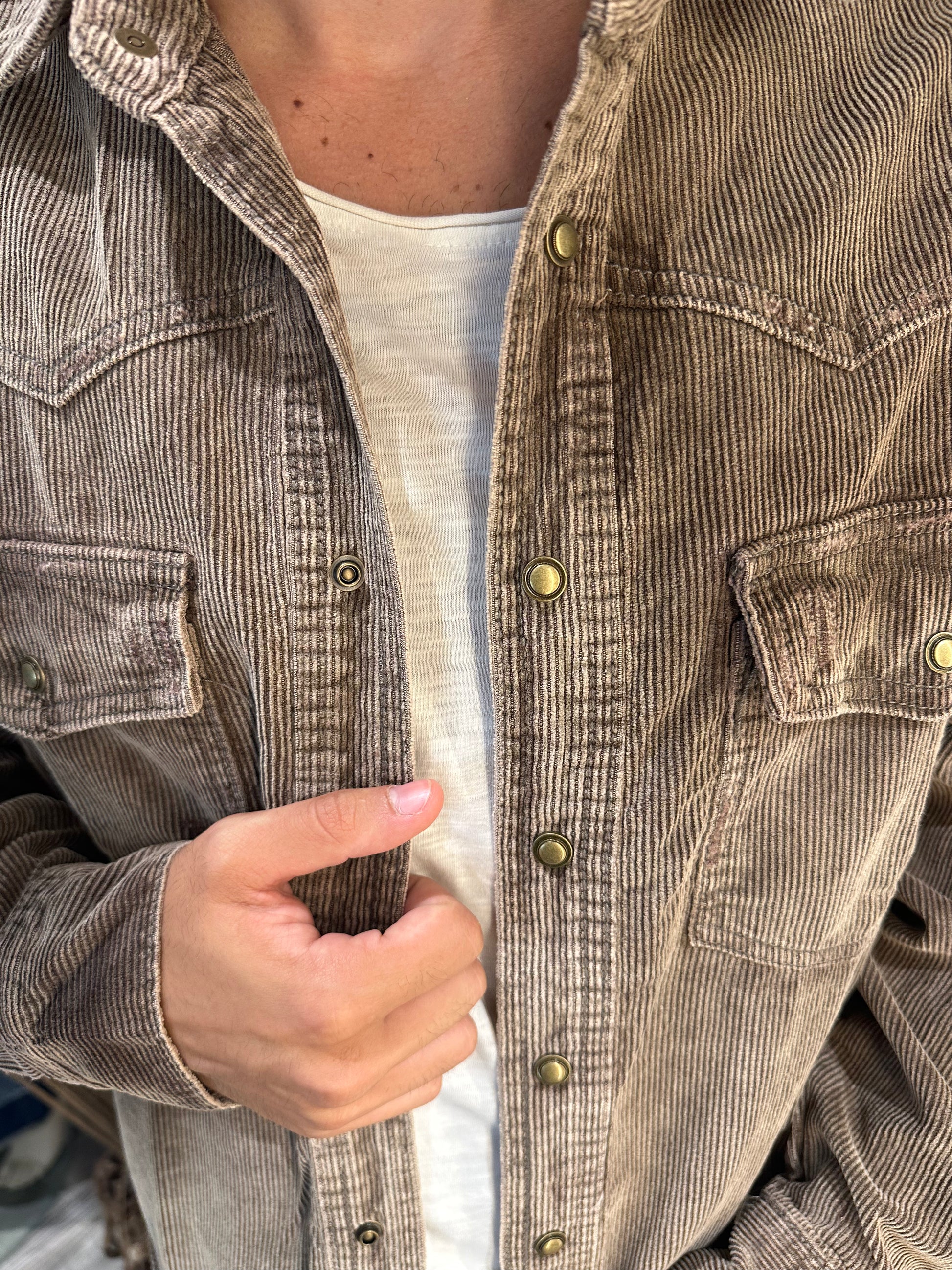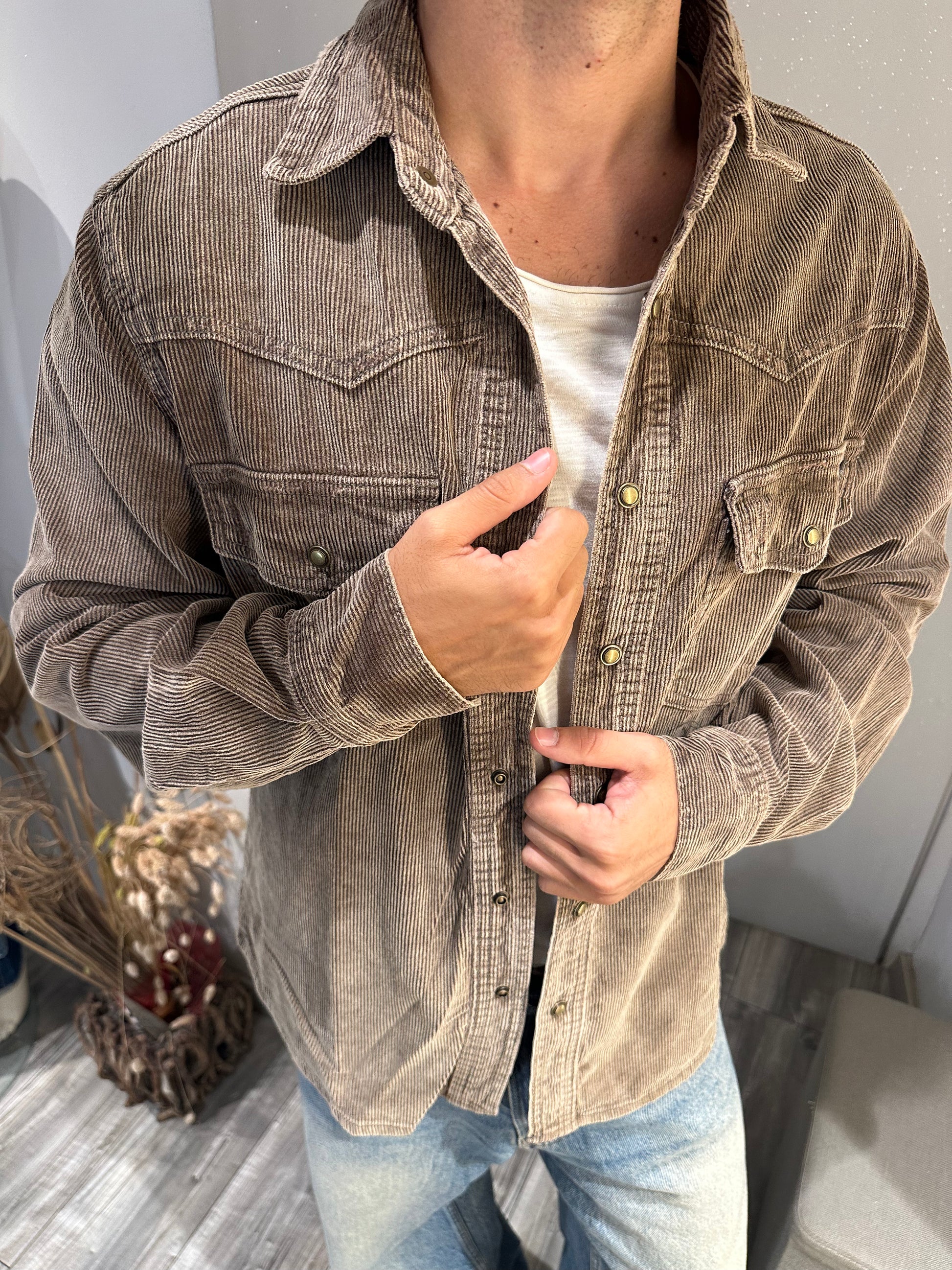 La giacca overshirt in velluto di Gianni Lupo, color caffè, si distingue per l’abbottonatura con clip e le lavorazioni particolari sulla tela che valorizzano la qualità del tessuto. Un capo tecnico e raffinato, ideale per chi cerca un mix di stile contemporaneo e dettagli artigianali di alto livello.