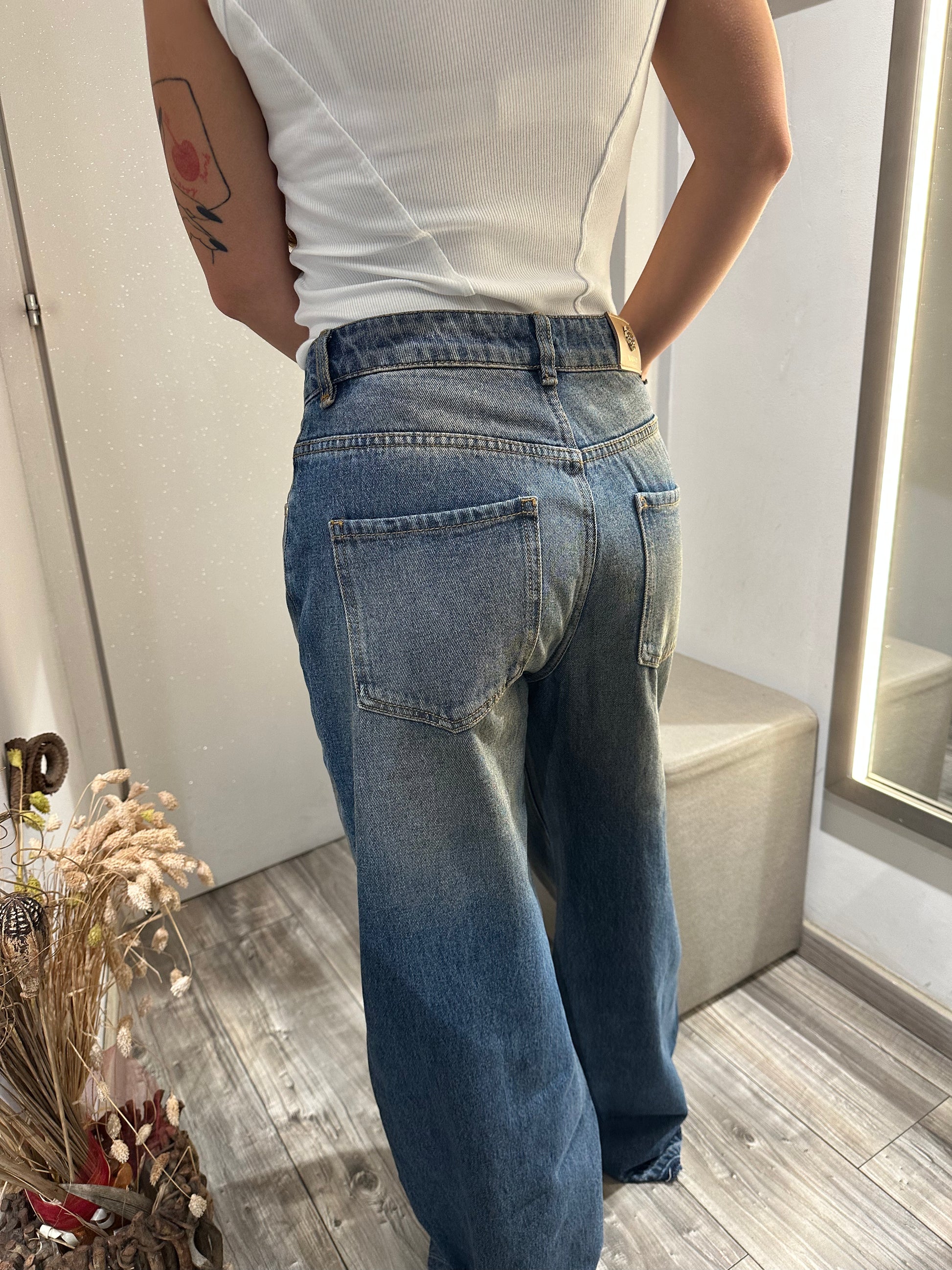Questo jeans wide leg presenta un lavaggio al tè che dona una tonalità naturale e raffinata. Il taglio ampio assicura comfort e libertà di movimento, mentre l'assenza di orlo sfrangiato conferisce un aspetto pulito e sofisticato. Ideale per creare look contemporanei e curati.