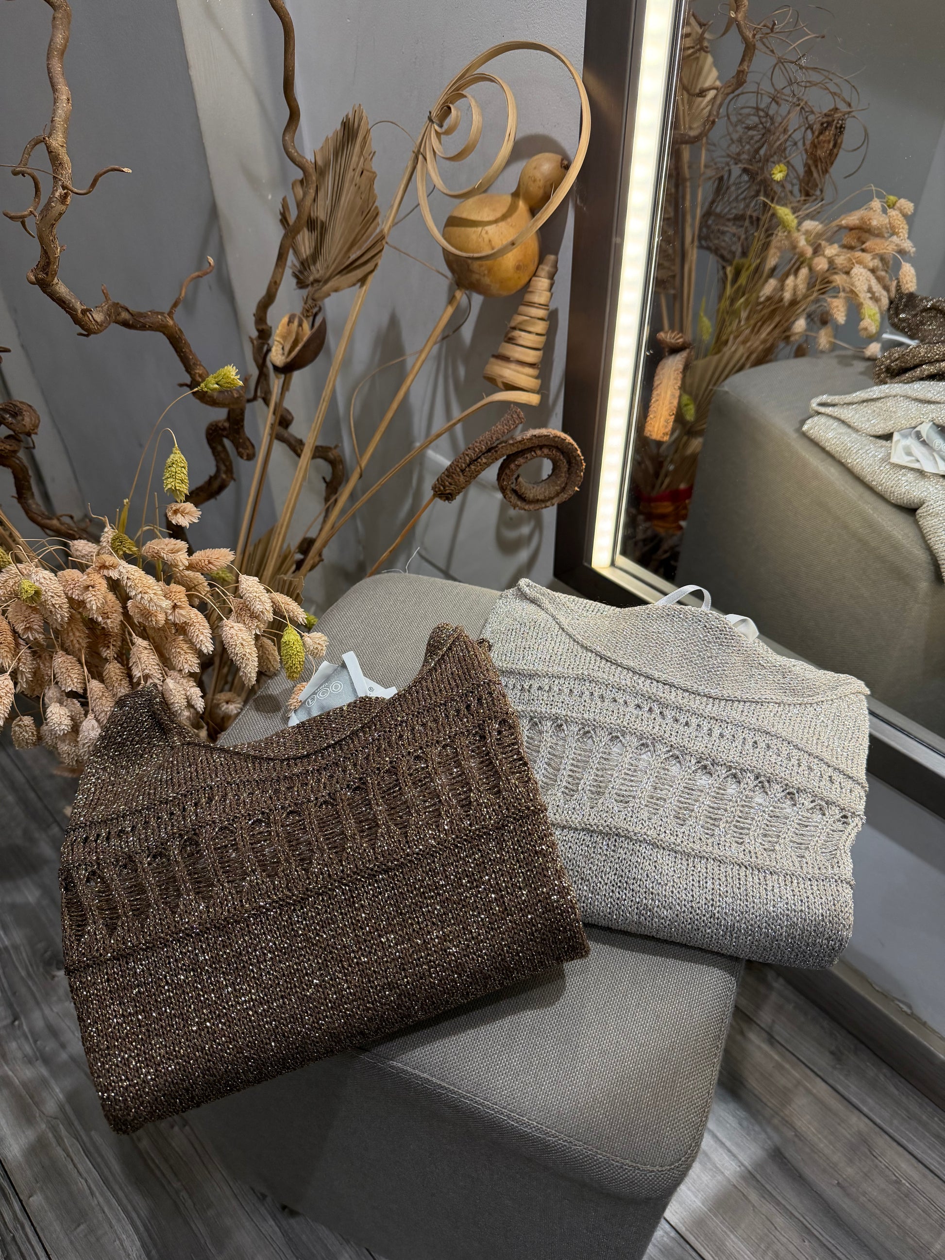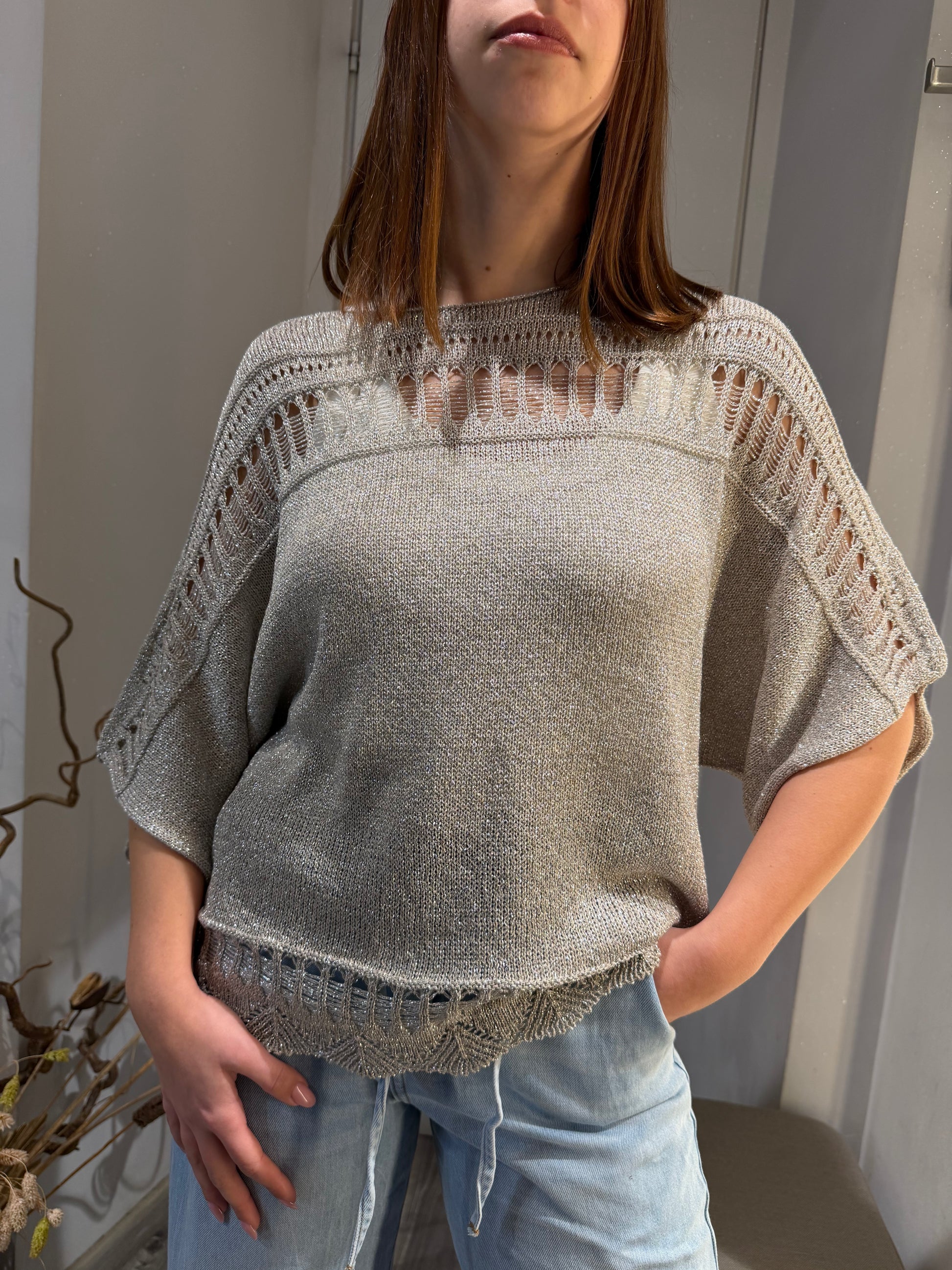 KIMONO TRAFORATO IN LUREX ARGENTO