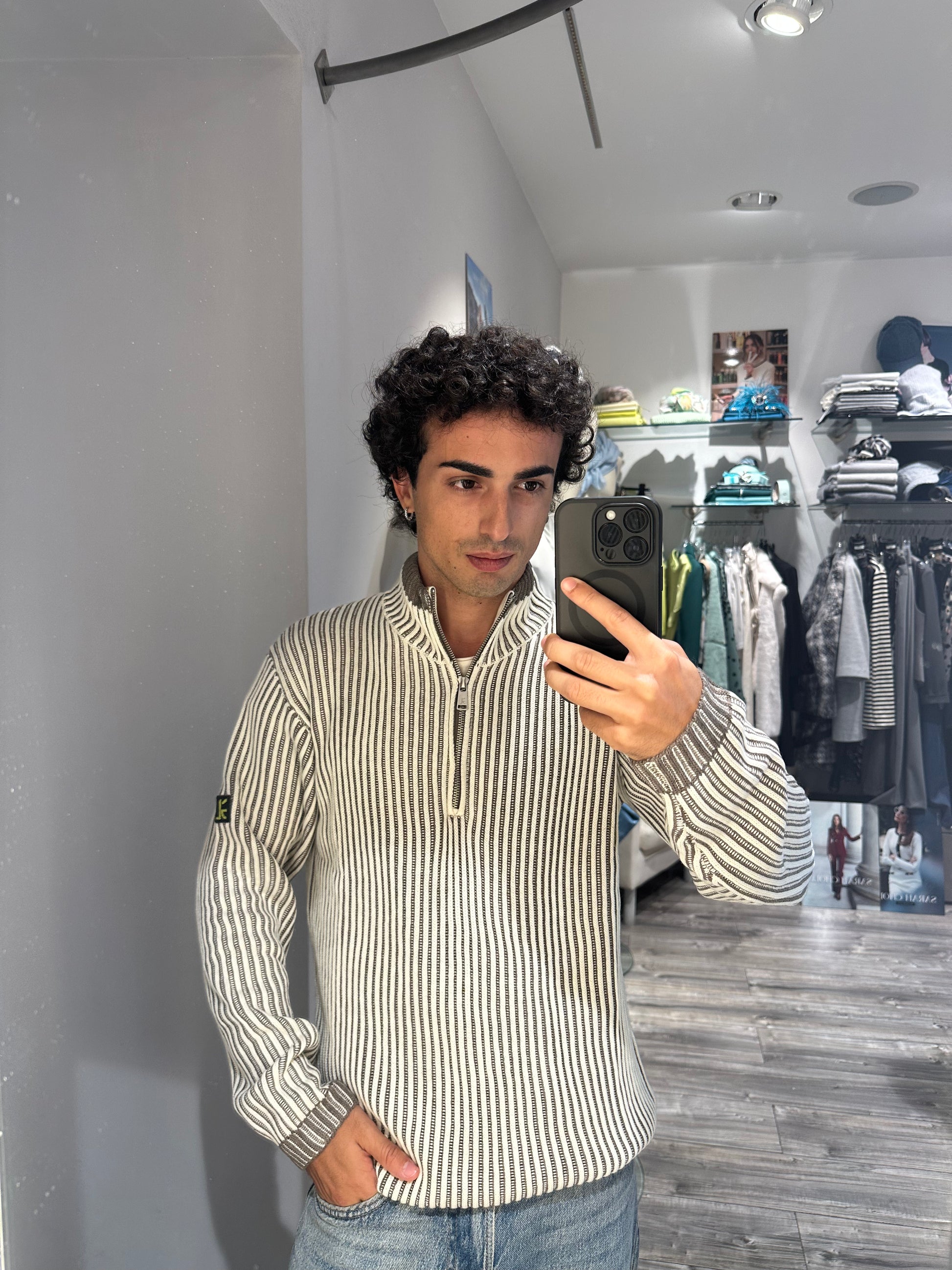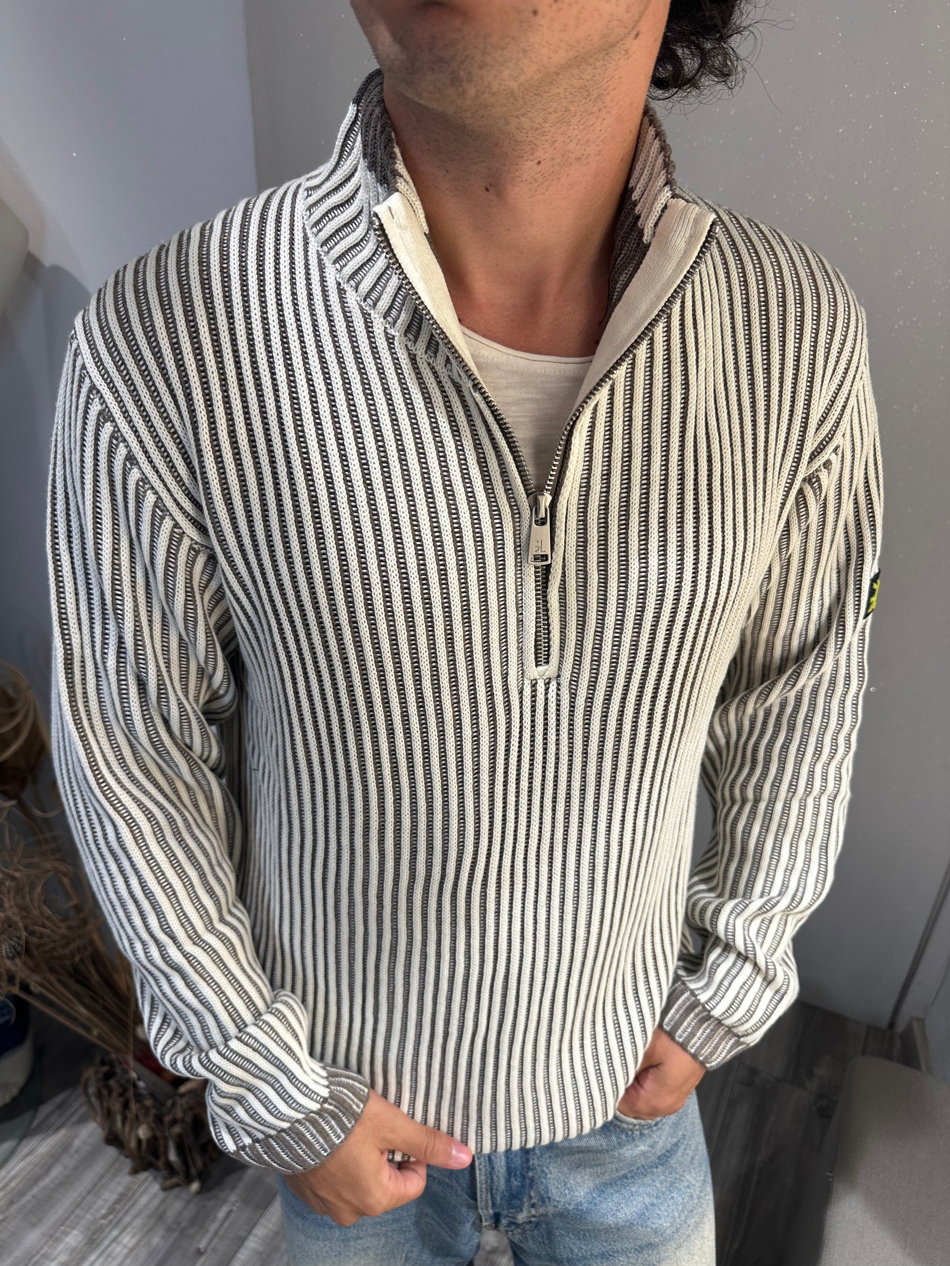 Il lupetto Gianni Lupo in costa inglese, dotato di zip al 1/4, unisce eleganza e funzionalità. La lavorazione a costa inglese garantisce struttura e vestibilità confortevole, mentre la chiusura a zip permette di regolare la temperatura e definire lo stile. Perfetto per stratificare con classe durante le stagioni più fresche, questo capo è una scelta raffinata per un guardaroba maschile contemporaneo.