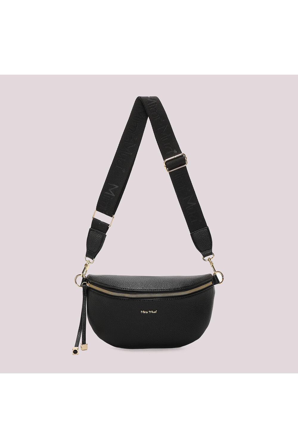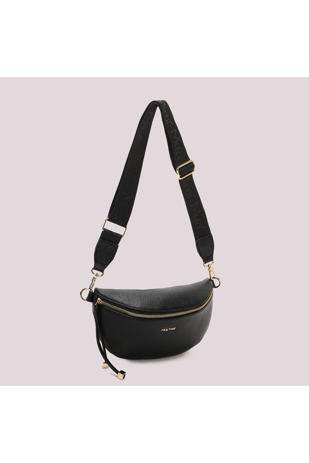 Marsupio pratico e versatile in tessuto con tracolla regolabile. Caratterizzato da un elegante tira zip con dettaglio oro quadrato e zip a contrasto dorato che cattura lo sguardo. La zip posteriore nascosta offre sicurezza extra per i tuoi effetti personali. Perfetto per chi cerca stile e funzionalità nel quotidiano, questo accessorio combina design moderno con comodità d'uso.
