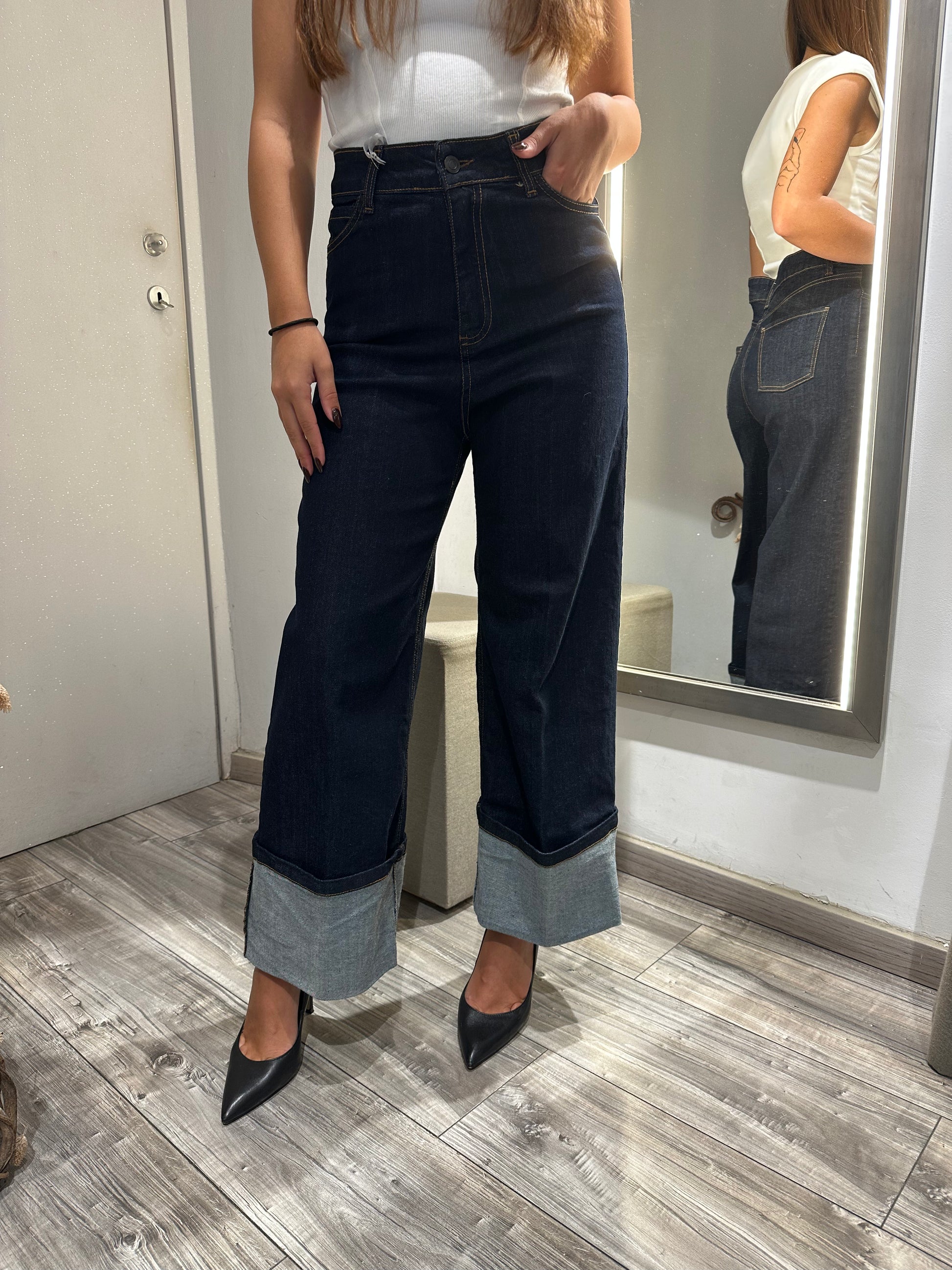 PANTA PALAZZO CON RISVOLTO CIMOSATO