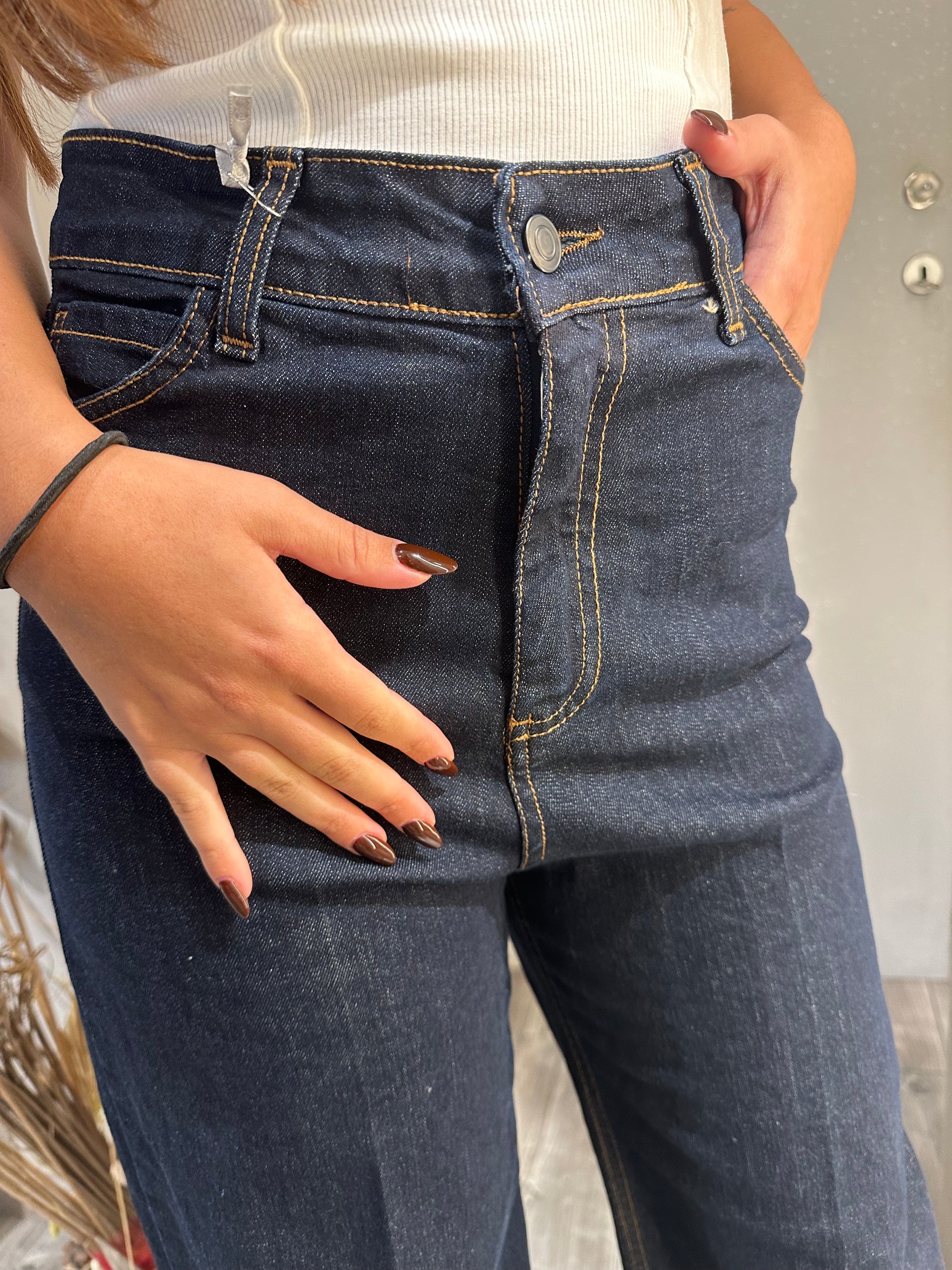 Il pantalone a palazzo con risvolto cimosato in raw denim è un capo sofisticato che coniuga stile classico e dettagli contemporanei. La sua linea ampia garantisce una vestibilità confortevole, mentre il risvolto rifinito con cimosa valorizza la qualità del tessuto grezzo, conferendo un tocco distintivo e artigianale. Ideale per chi desidera un look elegante senza rinunciare a comfort e originalità.